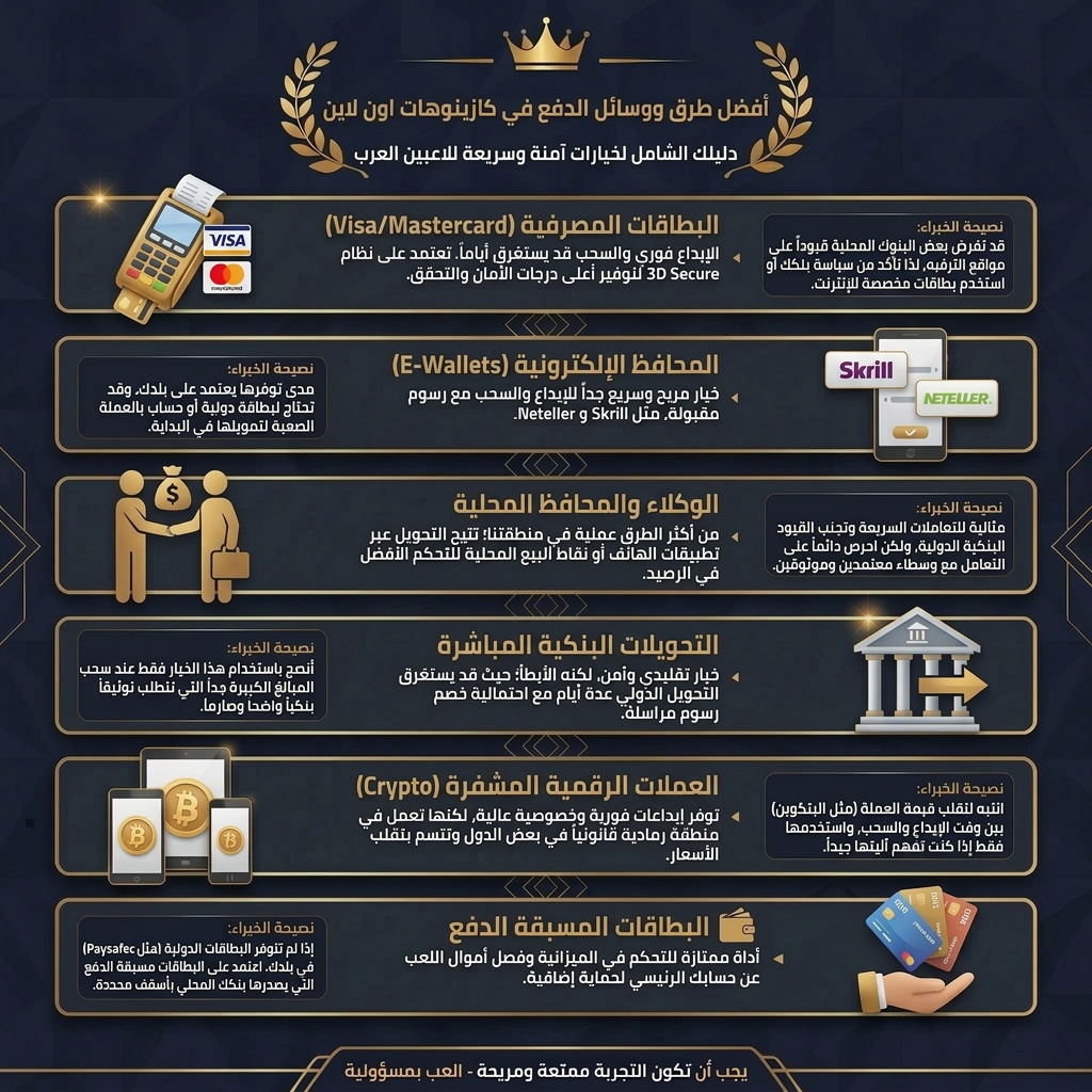 يعتمد nhiều من اللاعبين في الإمارات على المحافظ الإلكترونية مثل Skrill وNeteller، كما يفضلون استخدام العملات الرقمية مثل USDT وBitcoin، نظرا لانتشار بيئة الكريبتو في دبي بفضل VARA، مع البحث عن أفضل العروض التي تقلل الرسوم أو تمنح مزايا إضافية عند الإيداع.