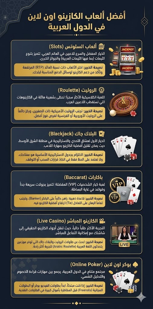 أثناء مراجعة مواقع الكازينو اون لاين، أبحث عن ألعاب الكازينو المباشر من شركات مثل Evolution وPlaytech، لأنها توفر جودة تصوير عالية وطاولات متنوعة، بما في ذلك موزعين يتحدثون العربية في بعض الأحياء.