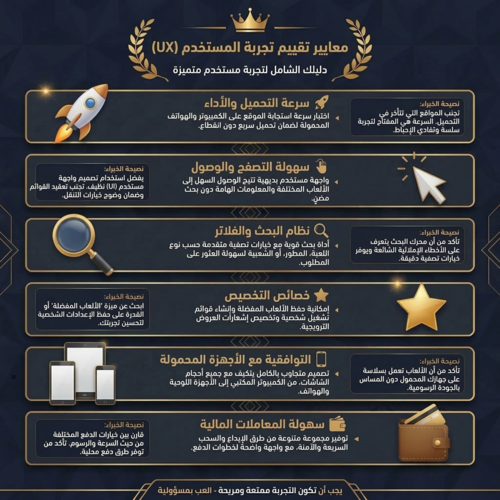 إذا كنت تفضل اللعب باللغة العربية، أنصح باختيار مواقع توفر دعما عربيا في خدمة العملاء على الأقل، والانتباه لشروط المكافآت والقواعد لتجنب أي سوء فهم أو مشاكل.